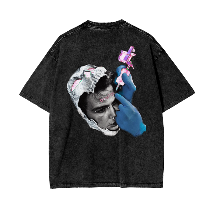 Black and Bruised Tattoo Acid Wash Oversize T-Shirt